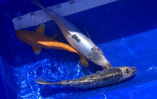 Poissons d’étang (Carpes, Brochets, Tanches), Poissons de bassin (Carpes Koïs, poissons rouges), Truites, Vifs et cela toute l’année.